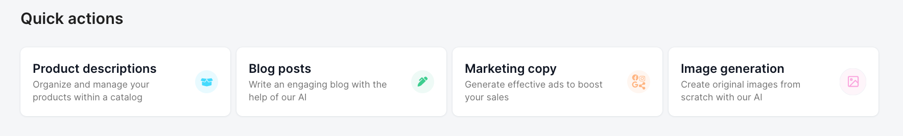 The AI text generator I used has a few different types to select from product descriptions, blog posts, marketing copy, and image generation.